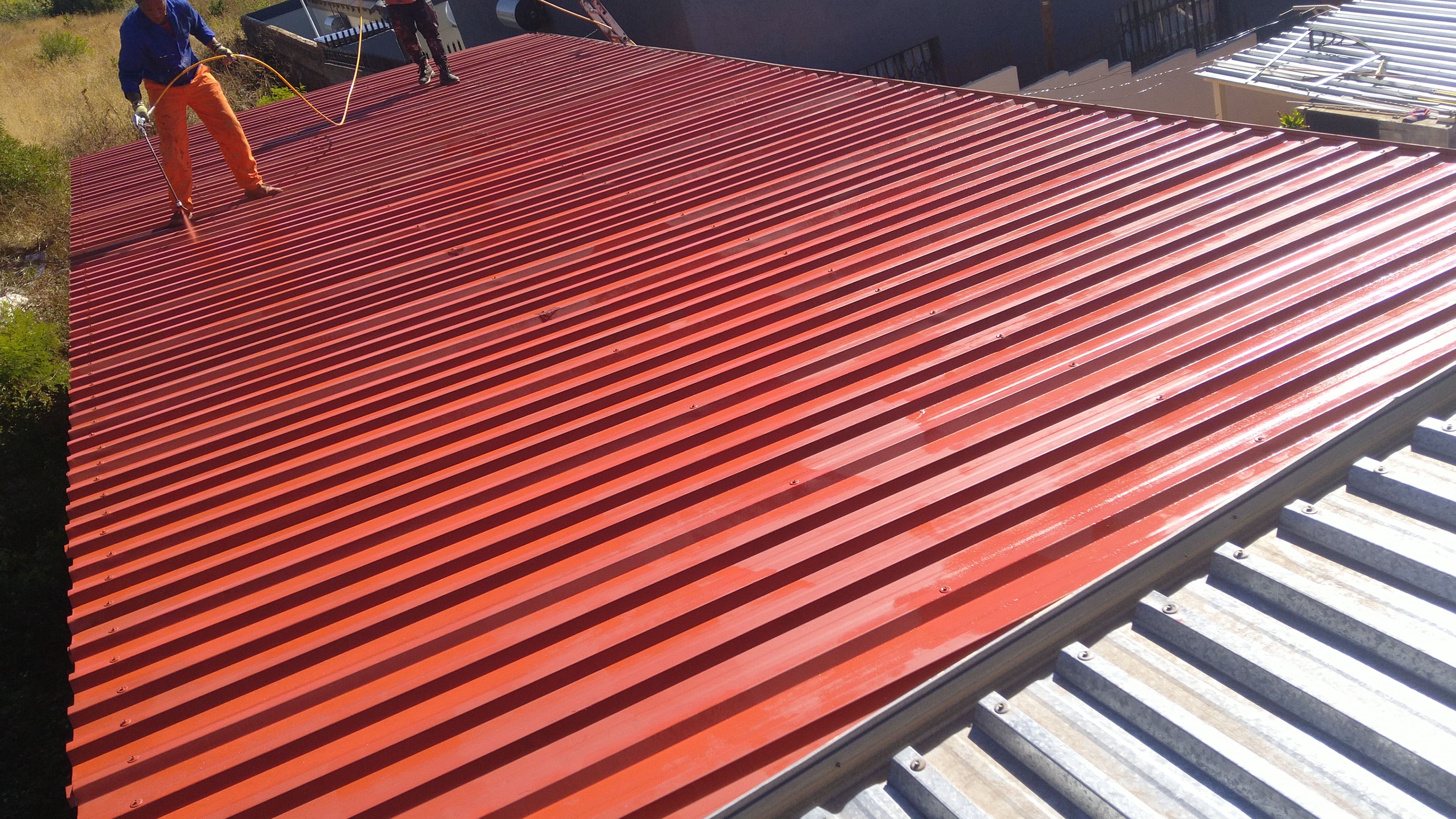 It's the process of applying a protective and decorative coating to a roof's surface, typically using specialized paints designed to withstand environmental elements and enhance the roof's appearance.